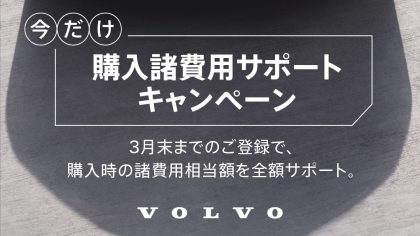 皆様こんにちは!いつもボルボ・カー長野のHPをご覧いただきありがとうございます。 本日は、『購入諸費用サポートキャンペーン』のご案内です。 今だけの特別サポート!ご購入時の登録諸費用相当額をサポートいたします。 ●条件:2026年3月末までに...