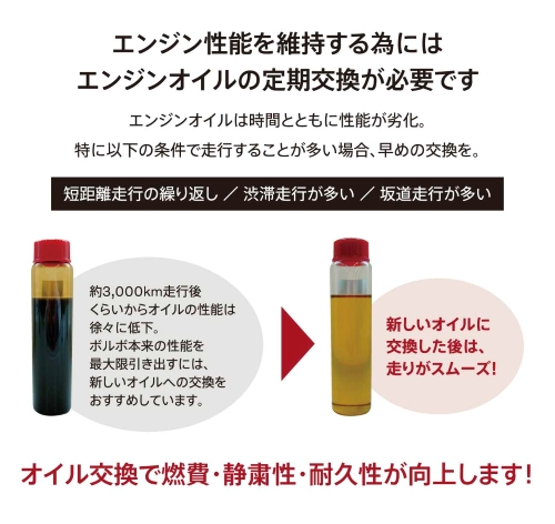 定期的なオイル交換で、走りのスムーズさ・静粛性・耐久性も向上します。
